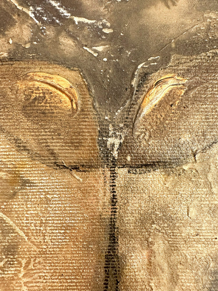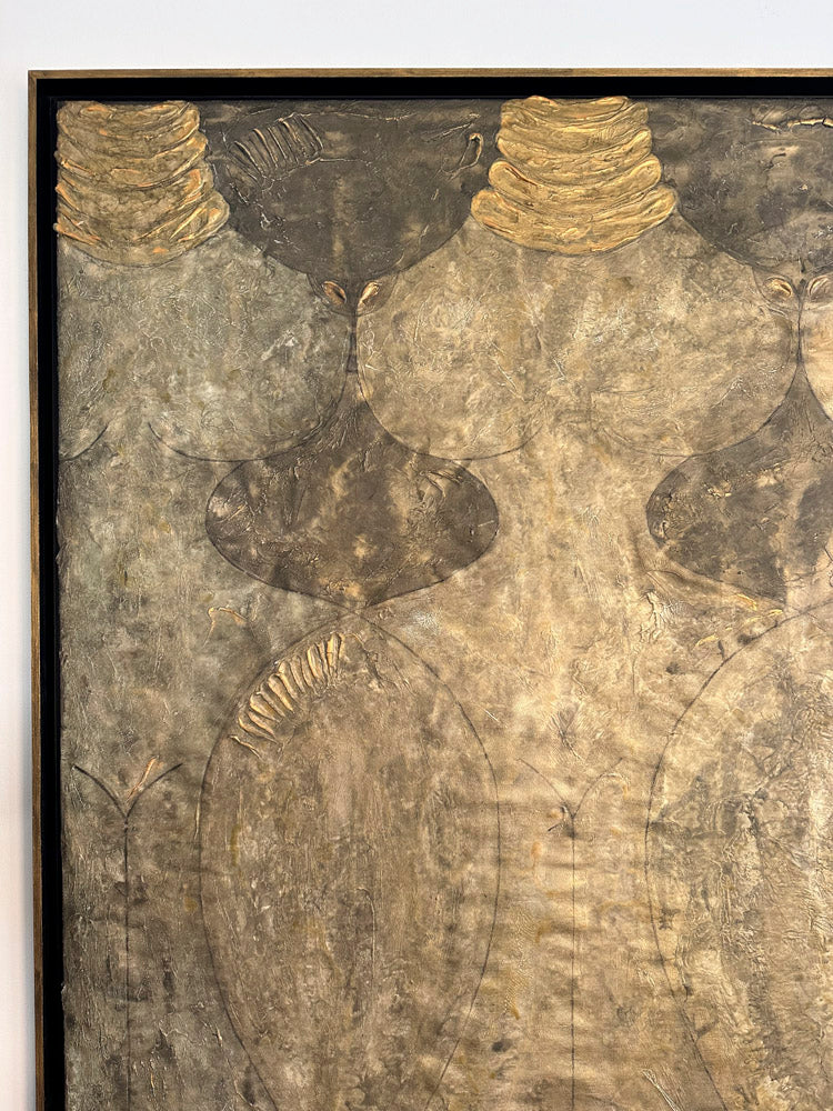 This piece is extra special because it marks the first painting I created entirely on my own! From building the frame beneath the canvas and mounting the fabric, to crafting the sleek black-and-gold frame that elevates the artwork, every element was made with my hands and heart.