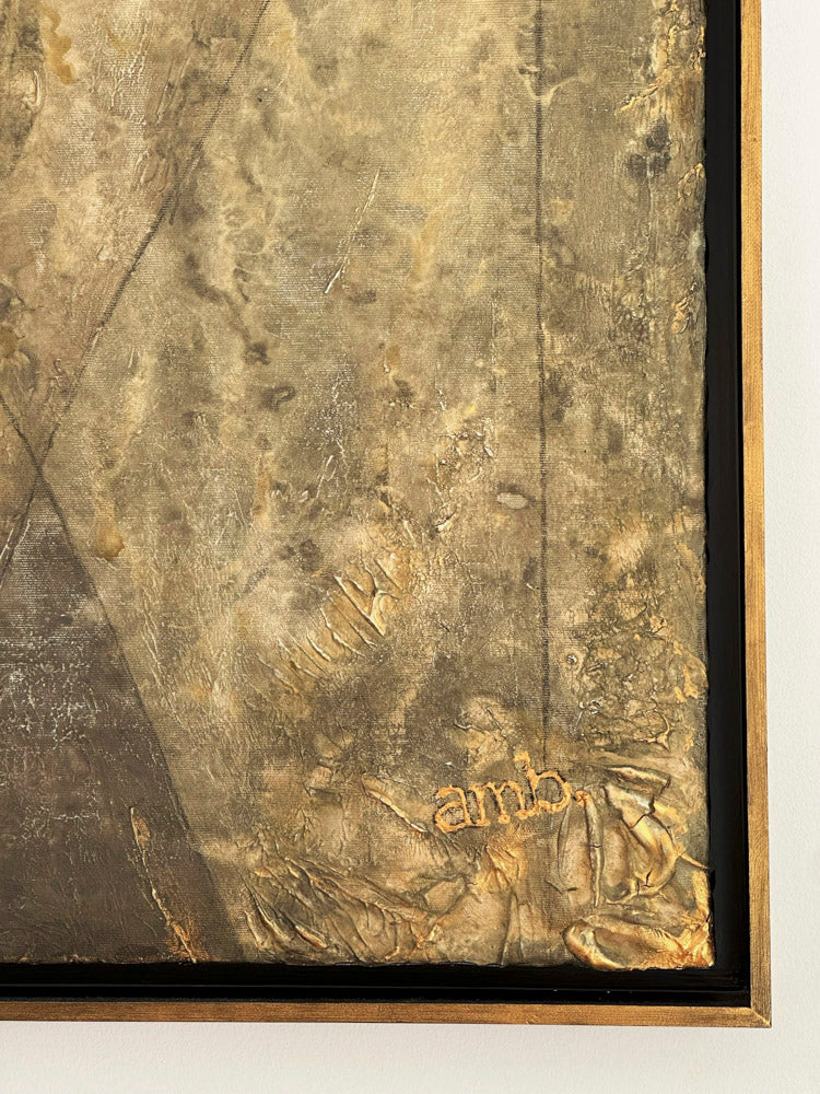 The frame is securely mounted to the painting and arrives ready to hang. It adds 2.5 centimeters to each side of the artwork’s dimensions.