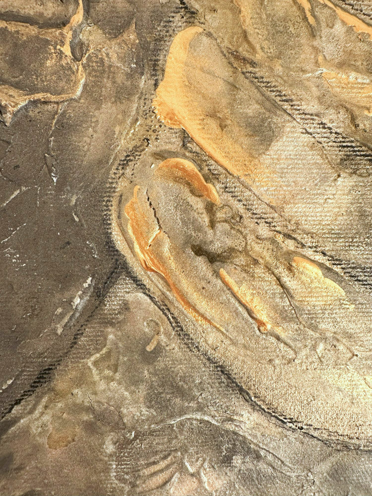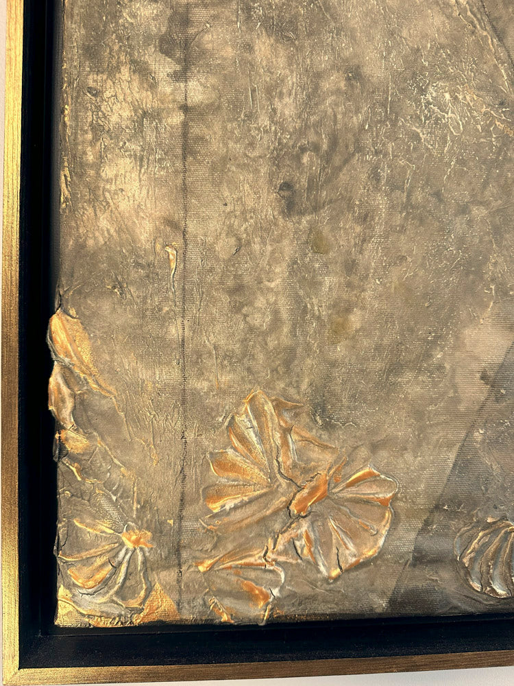 This artwork is designed to captivate and shine, especially when natural light touches its surface. The interplay of sunlight with the textures, shimmer, and depth brings the painting to life, revealing subtle details and enhancing its full brilliance and glow. To truly experience its beauty, consider placing it in a space where it can catch natural light during the day.