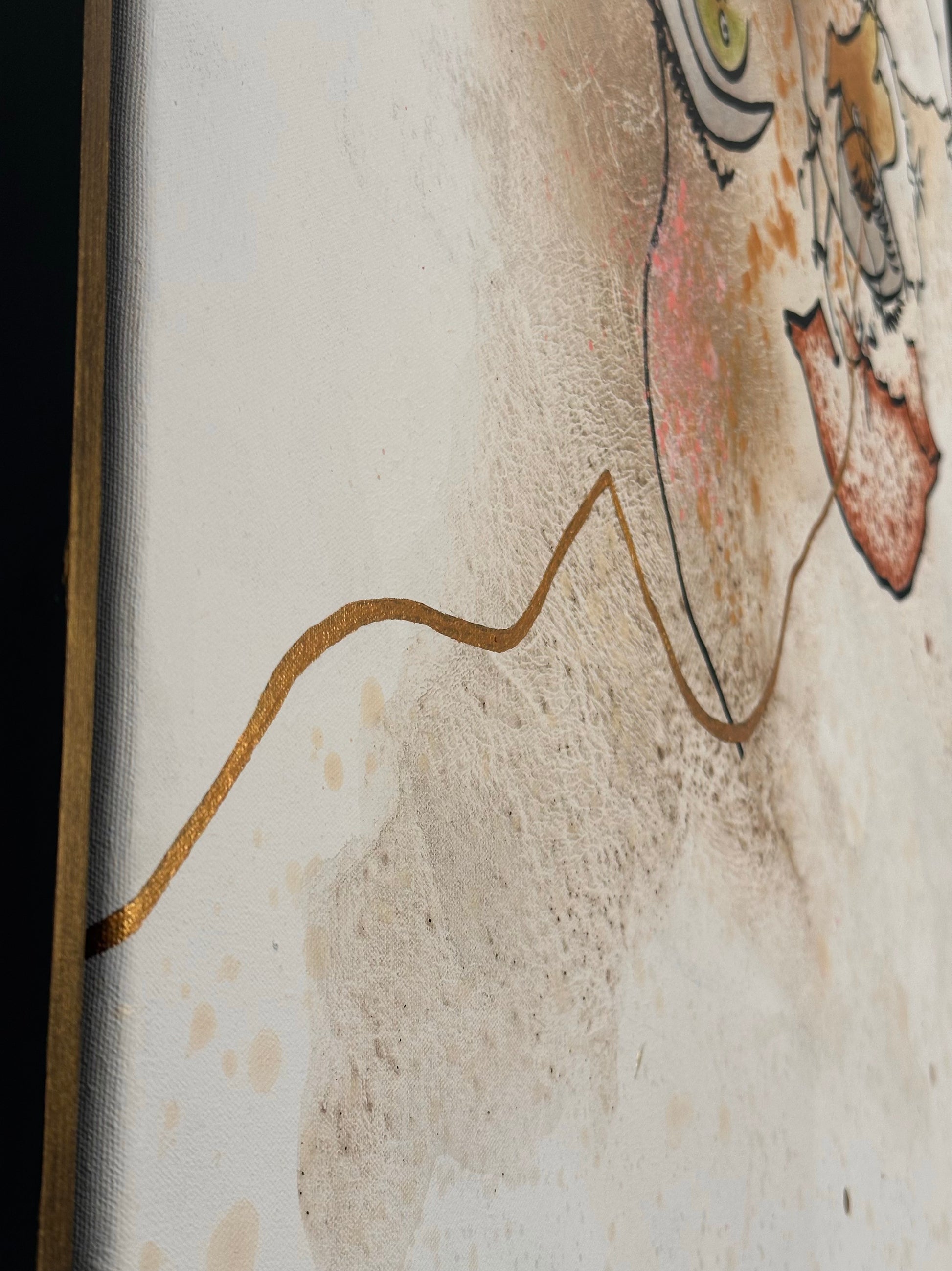 I’ve chosen a floater frame design to enhance the depth of the art, creating a visually striking and more expansive look. In my opinion, this design elevates the artwork, giving it a majestic presence that perfectly complements my style. The frame completes the piece, making it ready to find its forever home.