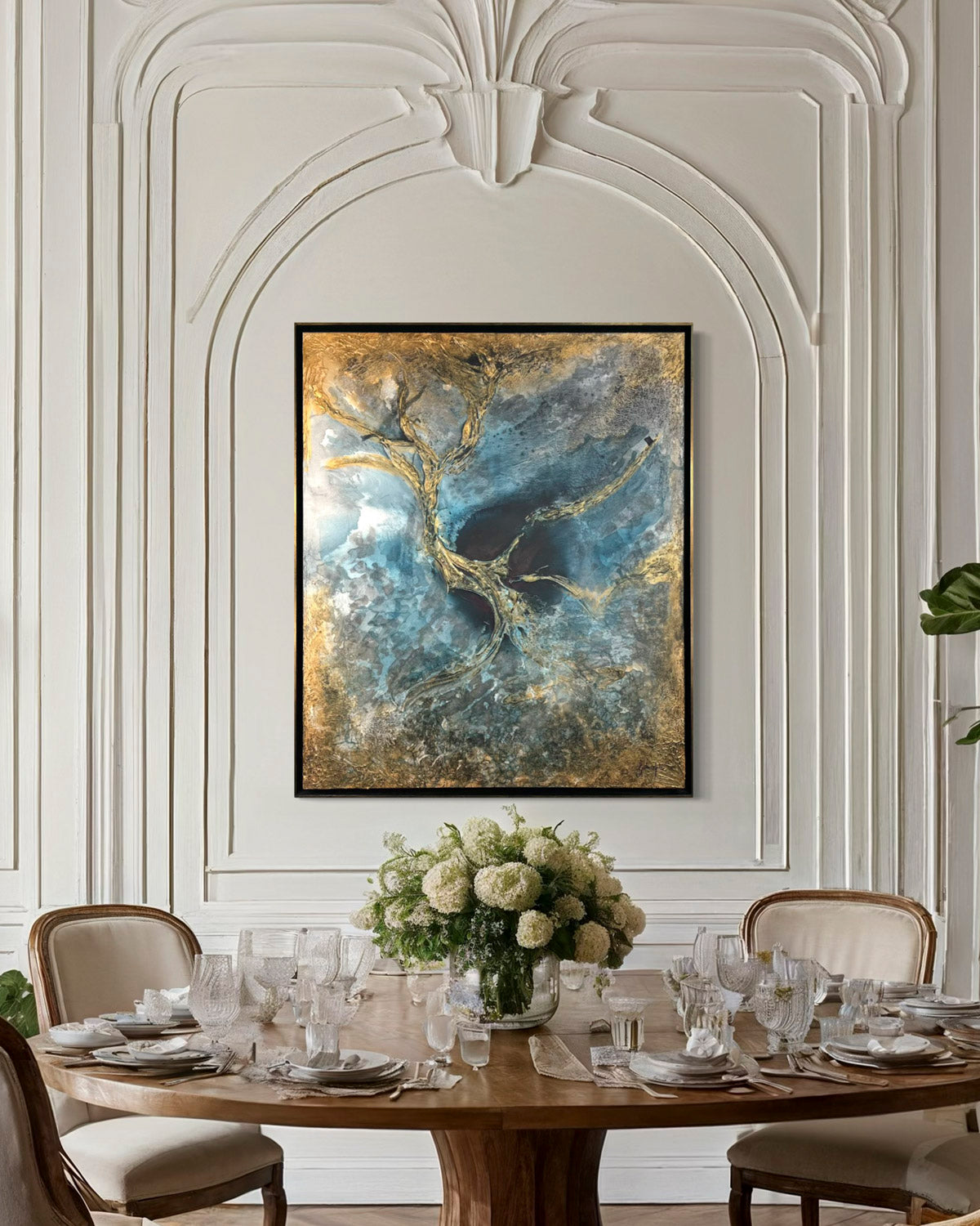 If sunlight isn’t an option, consider installing premium lighting to highlight and enhance the painting’s beauty. It will do wonders for the overall look of the artwork, accentuating its depth, shimmer, and colors in a way that transforms the space around it. With premium lighting it will truly create a focal point in your space.