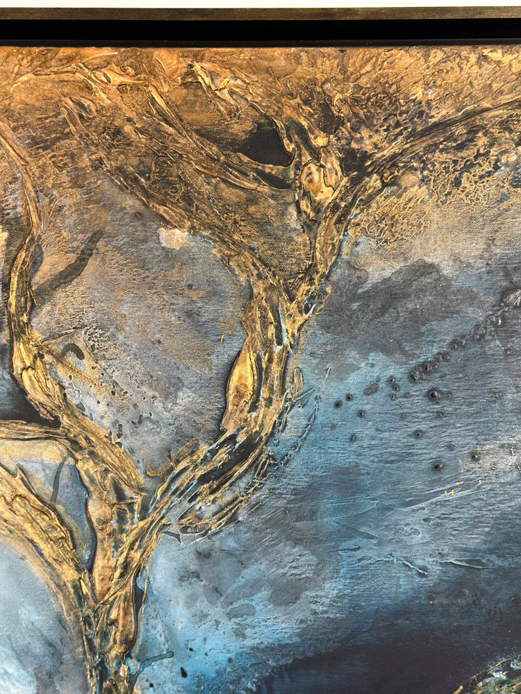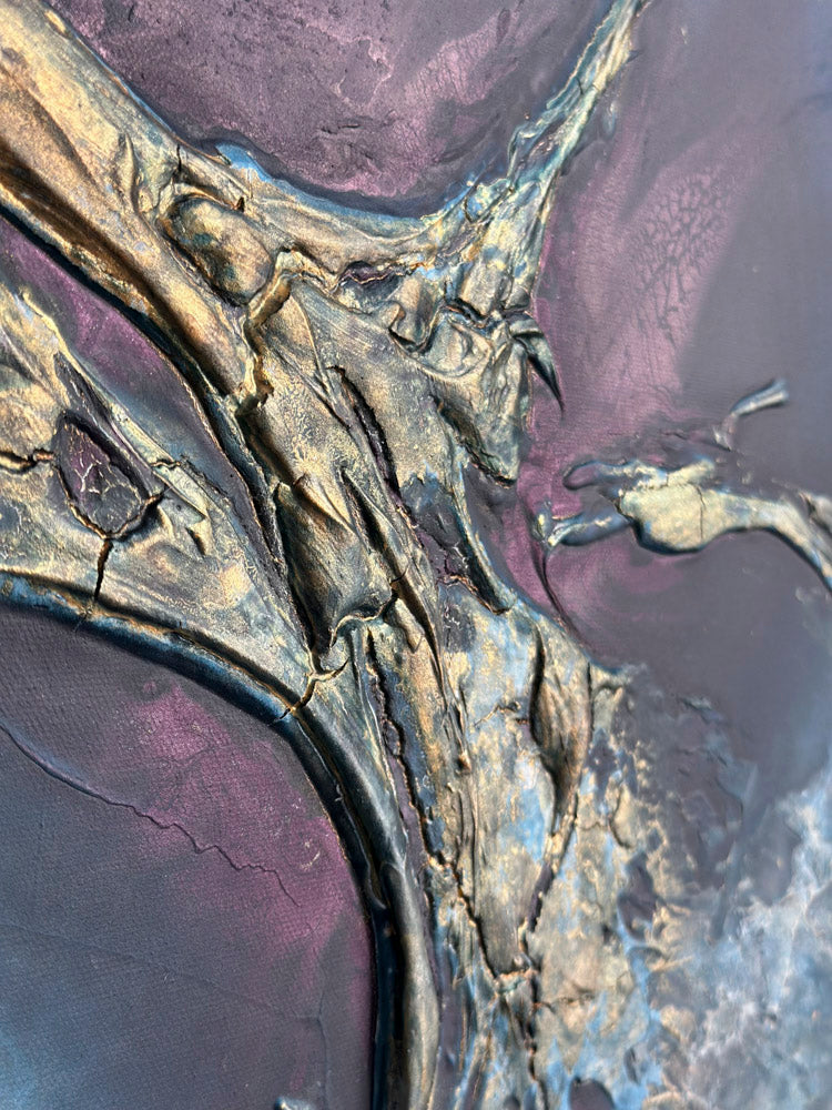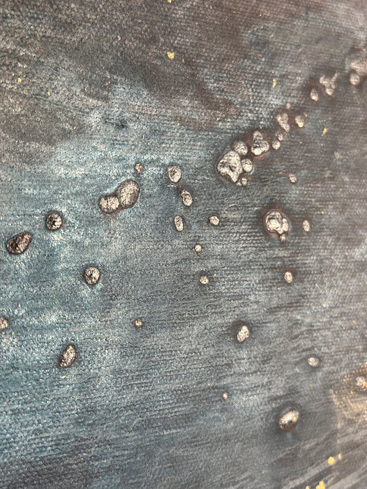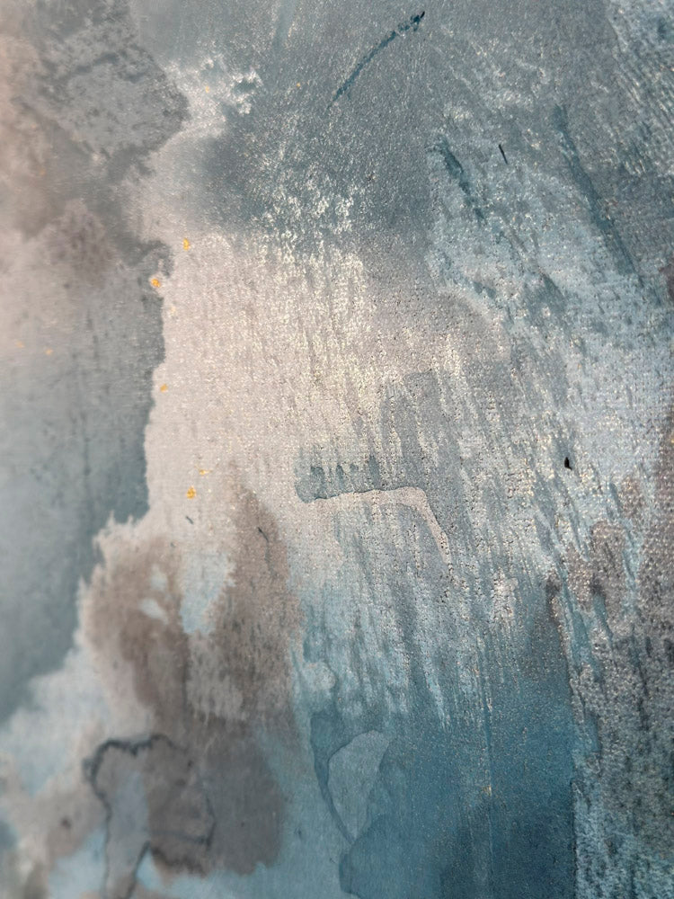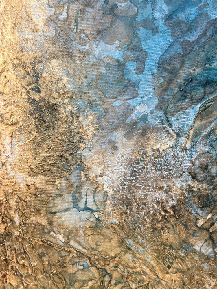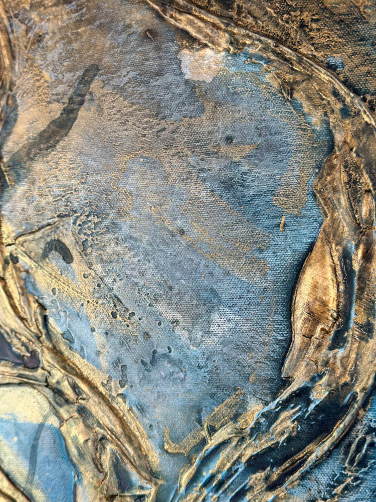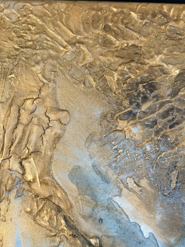 This artwork is designed to captivate and shine, especially when natural light touches its surface. The interplay of sunlight with the textures, shimmer, and depth brings the painting to life, revealing subtle details and enhancing its full brilliance and glow. To truly experience its beauty, consider placing it in a space where it can catch natural light during the day.